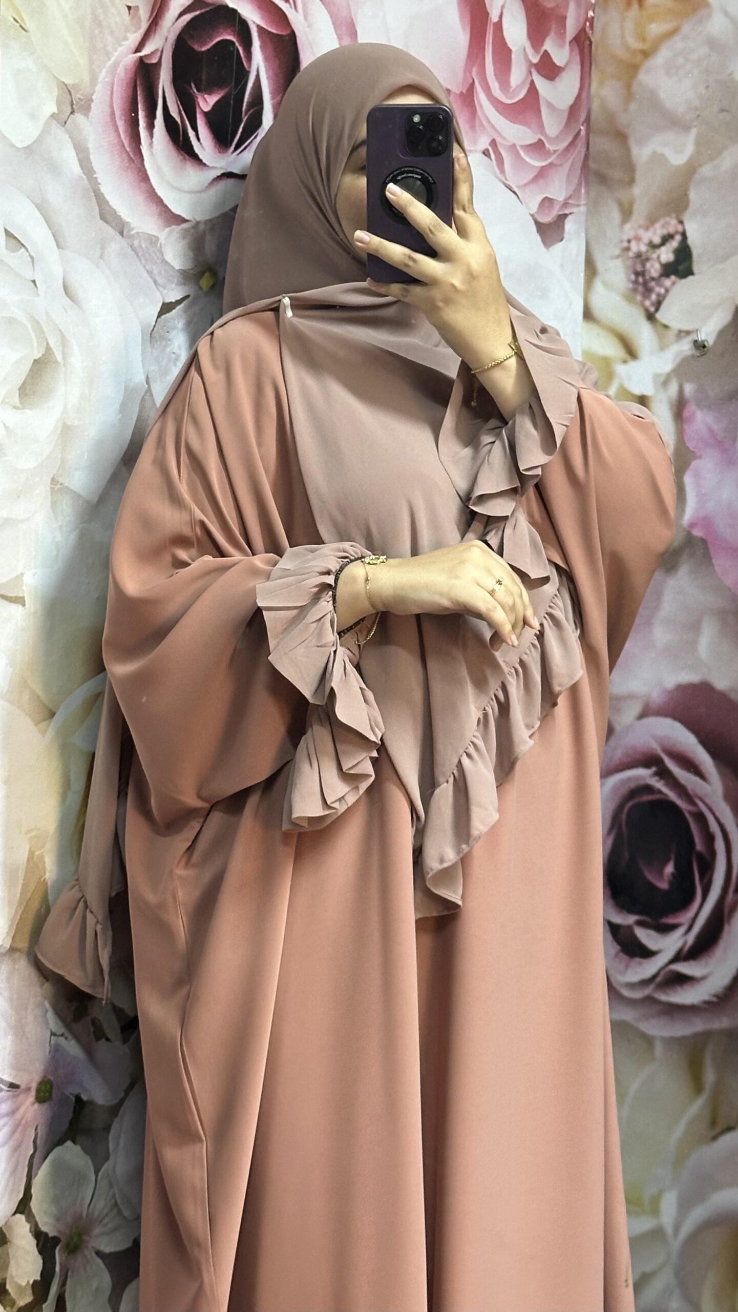 طقم زهراء (عباية عريضة بقصة فراشة وتفاصيل كلاص+ طرحة بفرافر أو مع فولار كاما المزركش