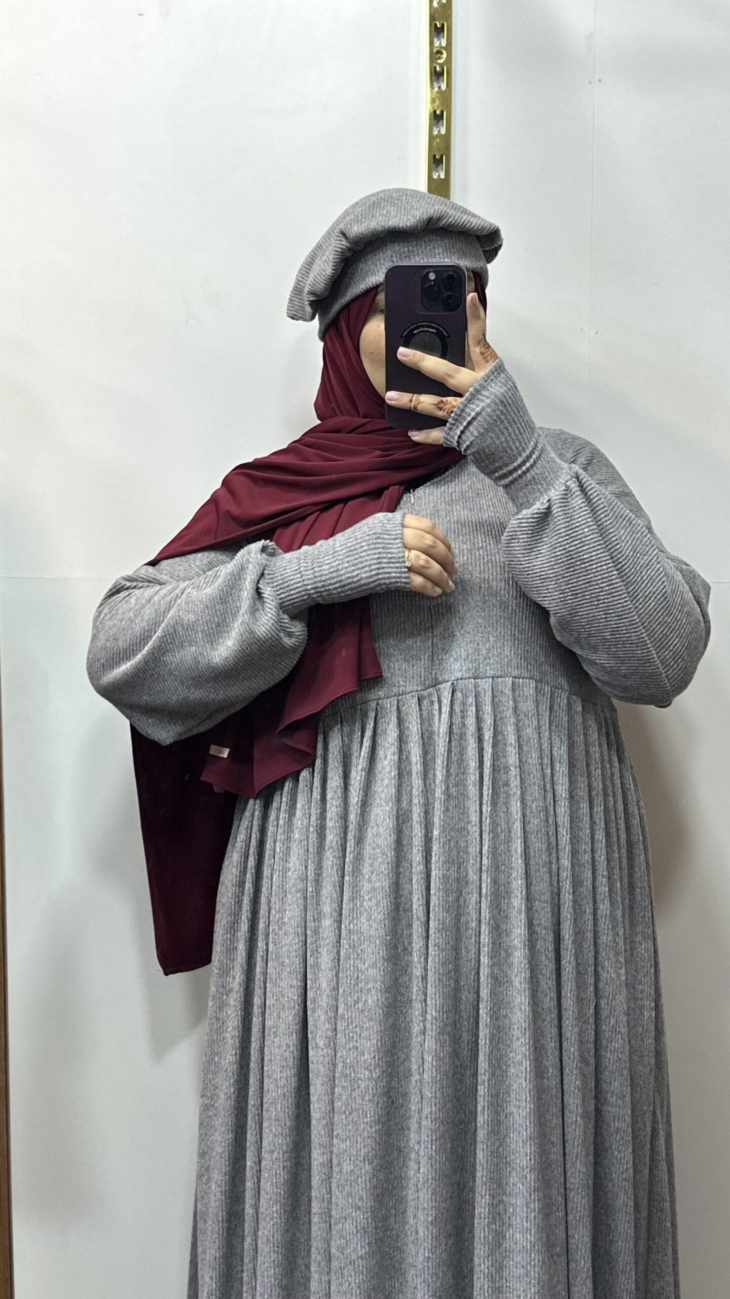 فستان دافئ ب سنسلة من الامام وتفاصيل انيقة في اليدين + بيريا هدية 🎁